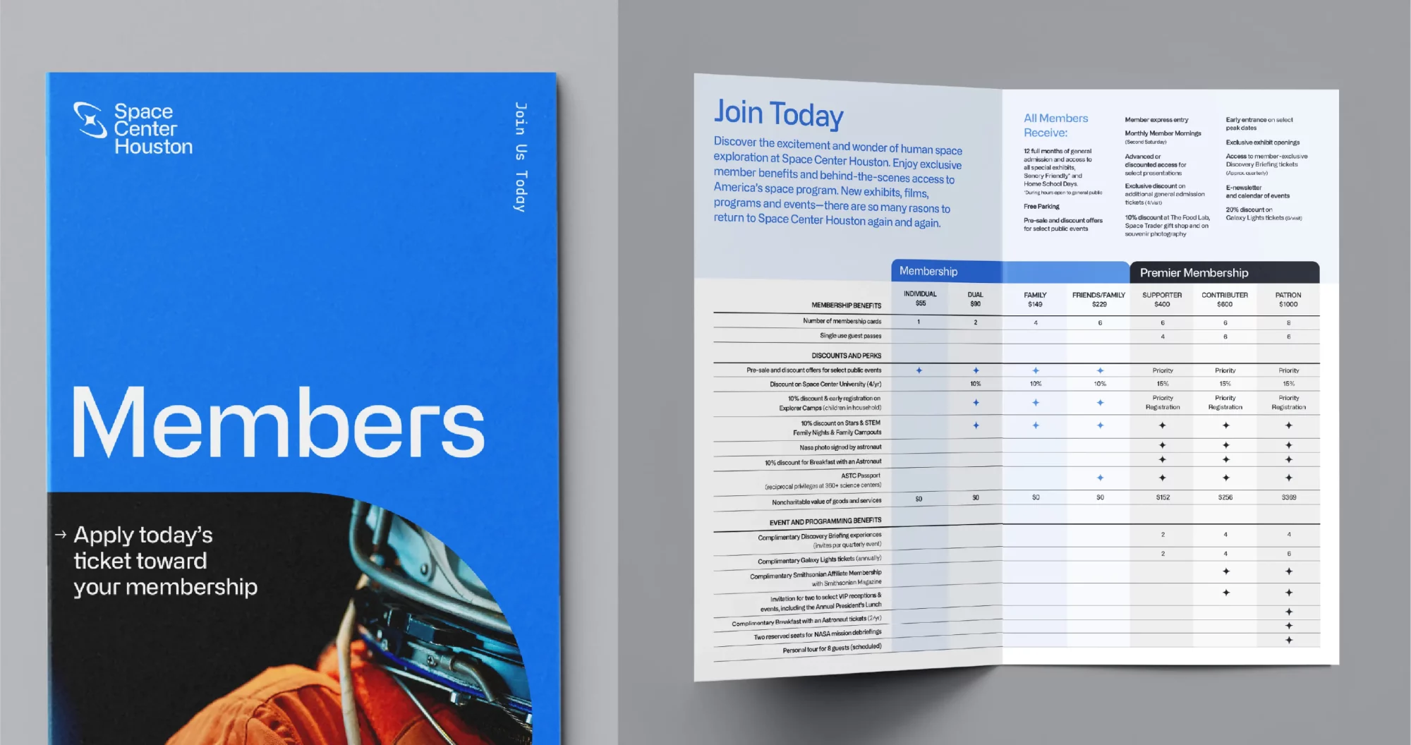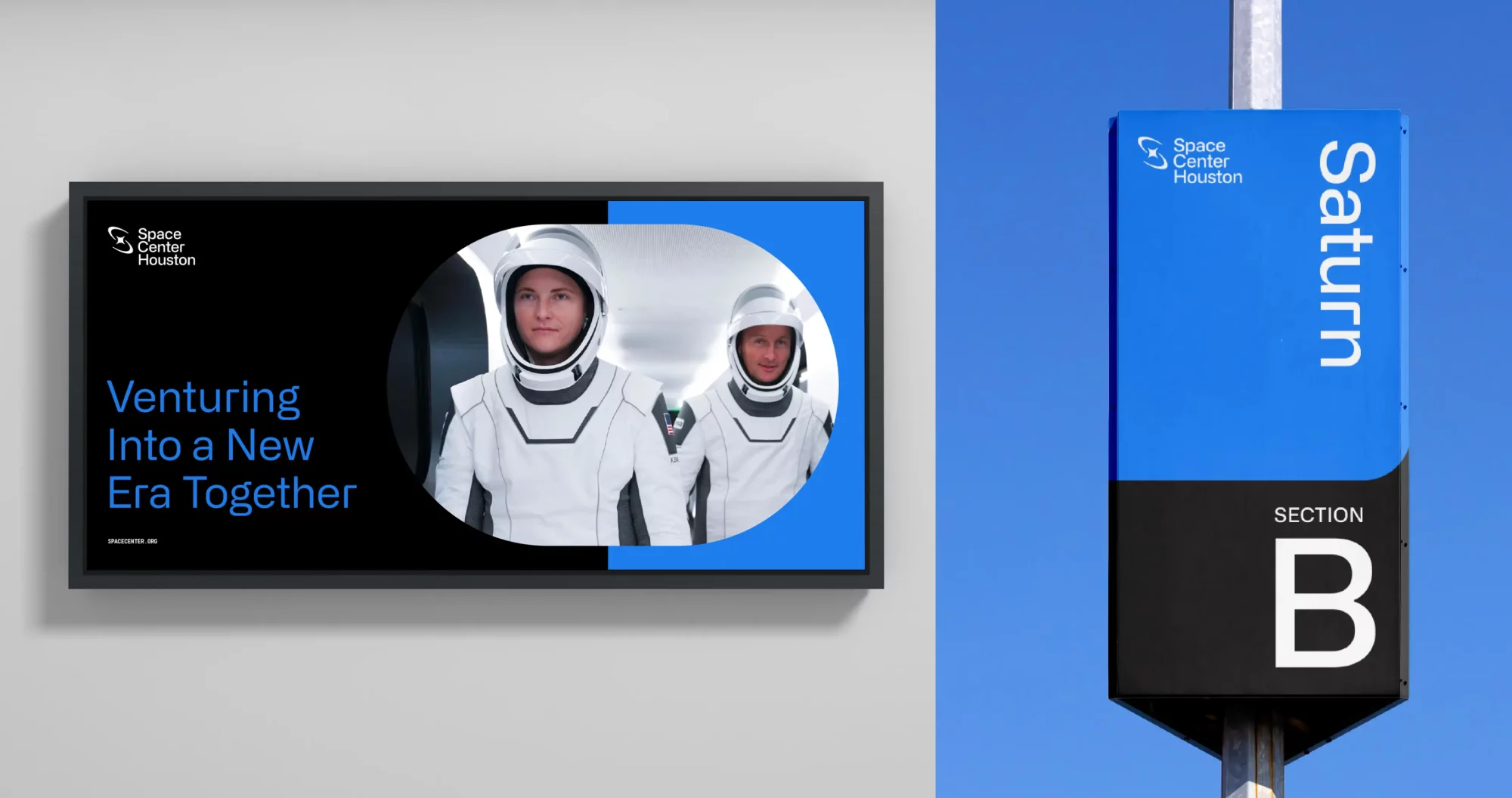 Traina’s bold identity system equally suits Space Center Houston’s ambition, designed for equal footing with elite partners like SpaceX and Blue Origin, yet able to stand on its own with distinction.