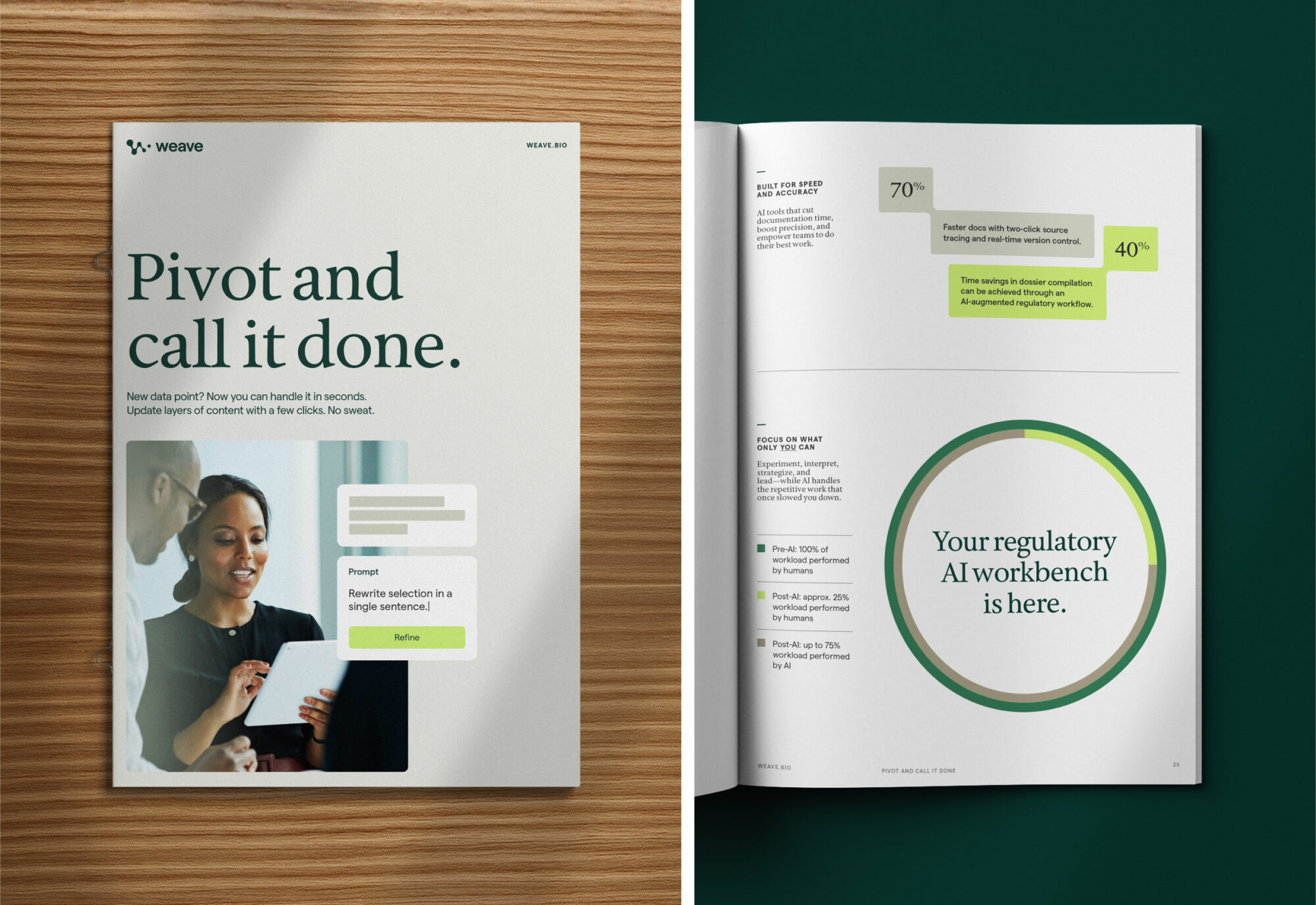 The real barrier to AI adoption wasn’t resistance—it was skepticism that any platform could deliver audit-ready dossiers. We positioned Weave as human-led AI, where regulatory experts direct the technology using their secure data, with verification and oversight built into every step.